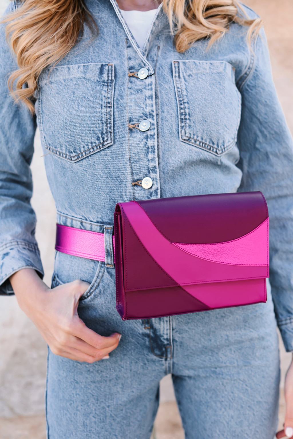 • 120 × 4 cm-es állítható övszíj, melyet külön is viselhetsz ( Basic öv ) - Metál fukszia színben.