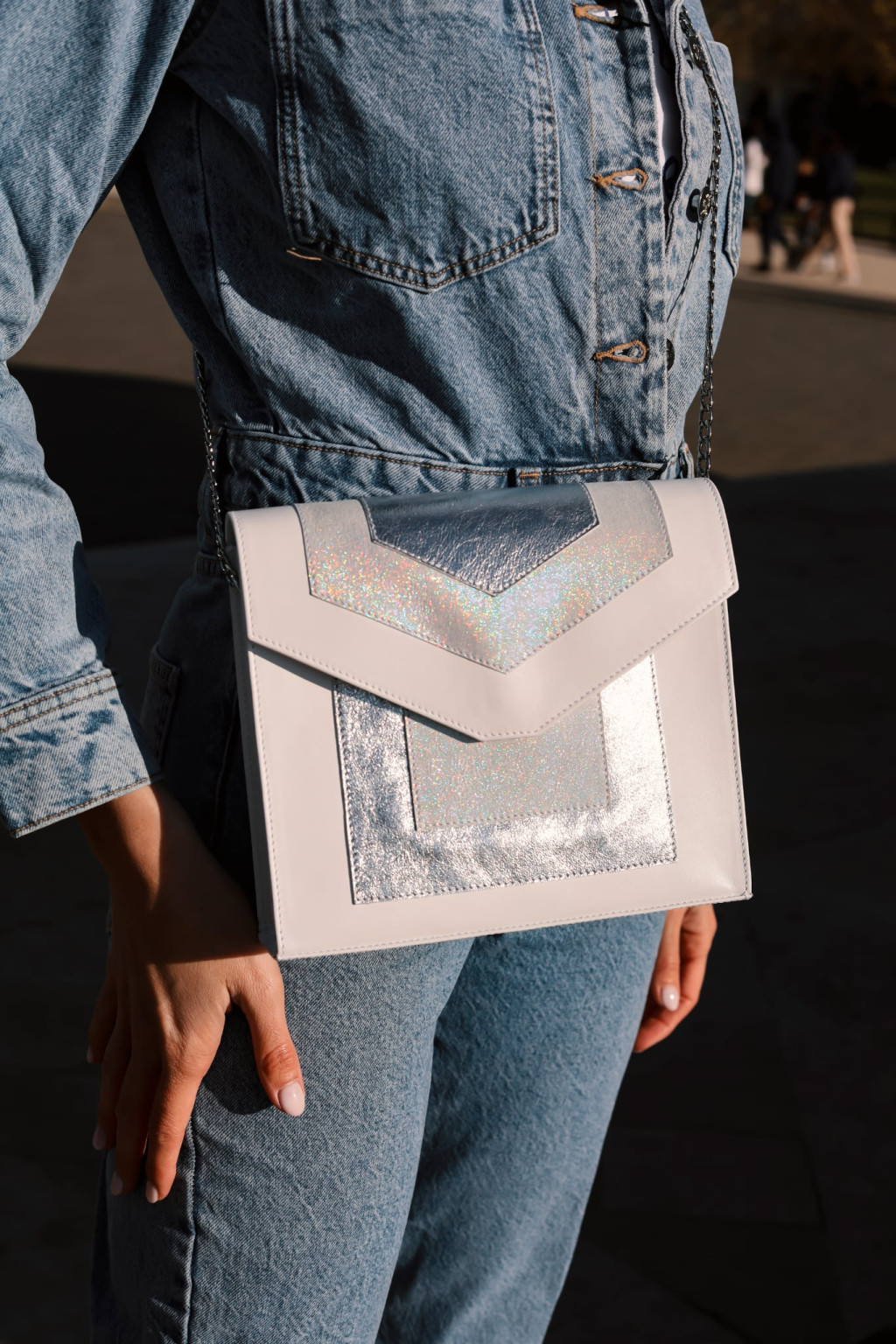 A táska letisztult, egyteres kialakítása praktikusan rendszerezhető belső teret biztosít, melyet egy külső és egy belső nyitott zseb egészít ki. A mágneszáras záródás egyszerű és biztonságos használatot tesz lehetővé, míg a 105 cm hosszú, fogóval ellátott lánc kényelmes vállra akasztható viseletet nyújt.