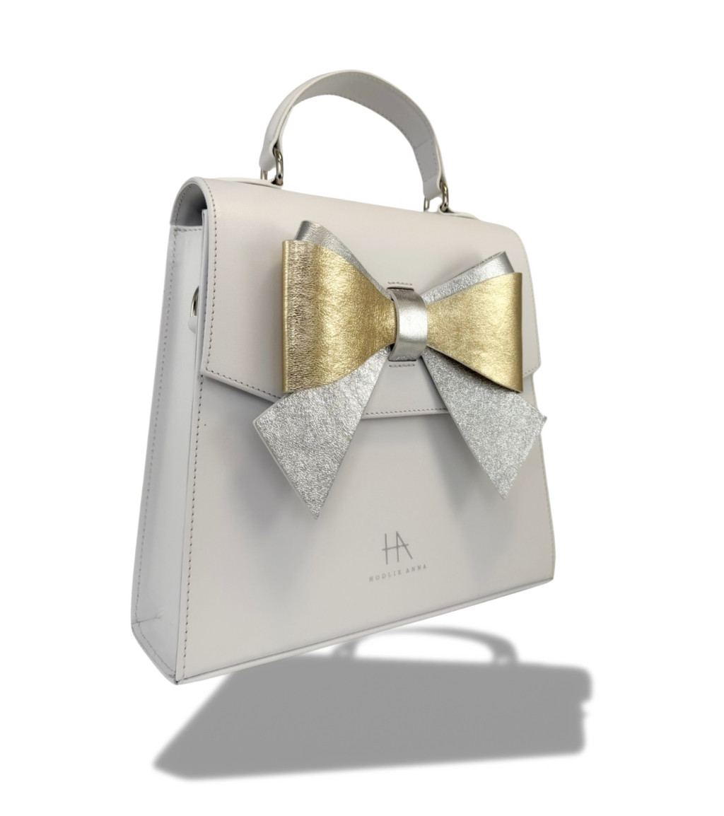 Ez az egyedi tervezésű és kivitelezésű, magas minőségű marhabőrből készült táska tökéletes választás azok számára, akik a letisztult formavilágot szeretik egy kis extra csavarral. A látványos, kézműves masni díszítés játékos nőiességgel és egyediséggel ruházza fel ezt a prémium darabot.