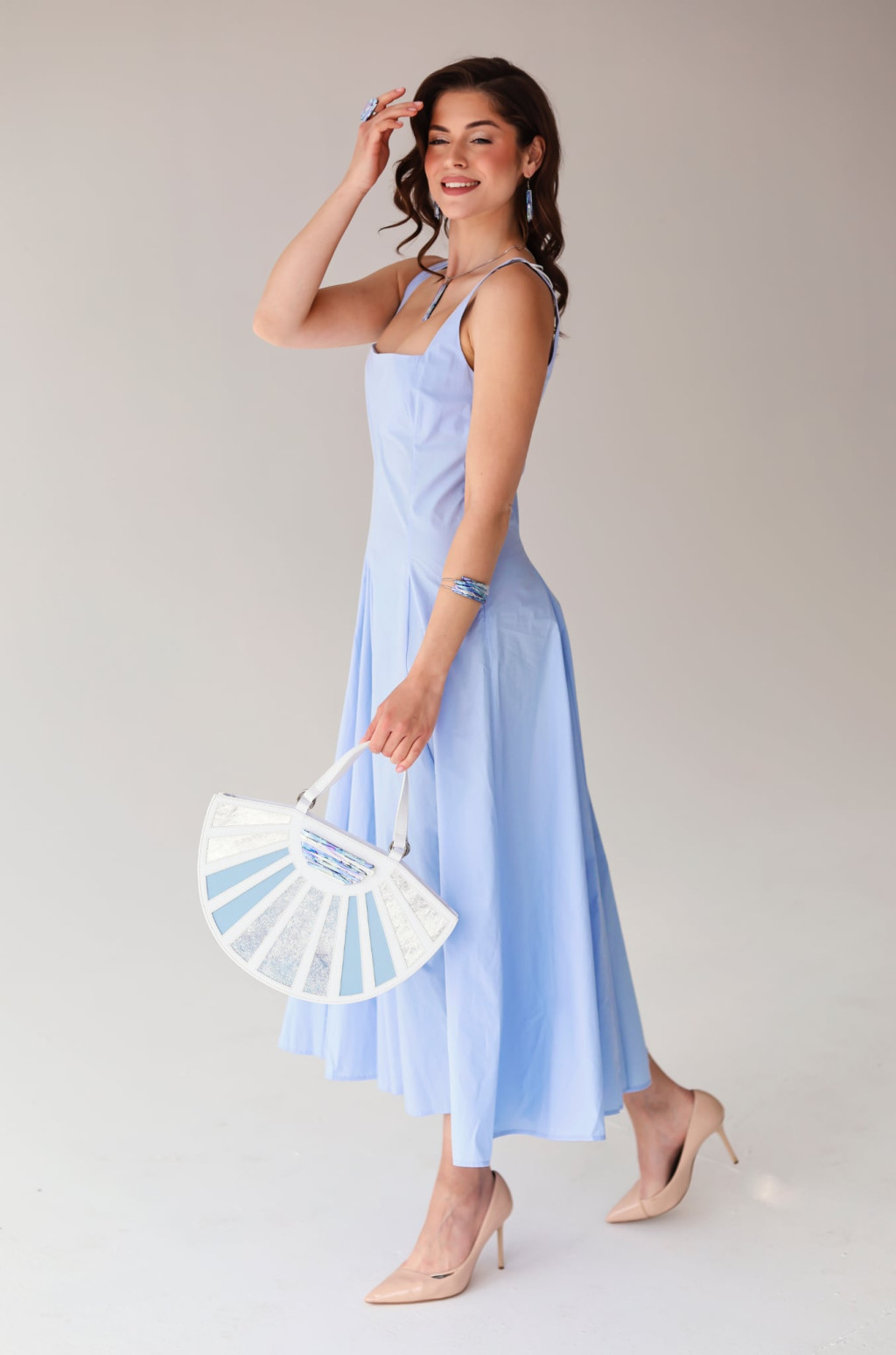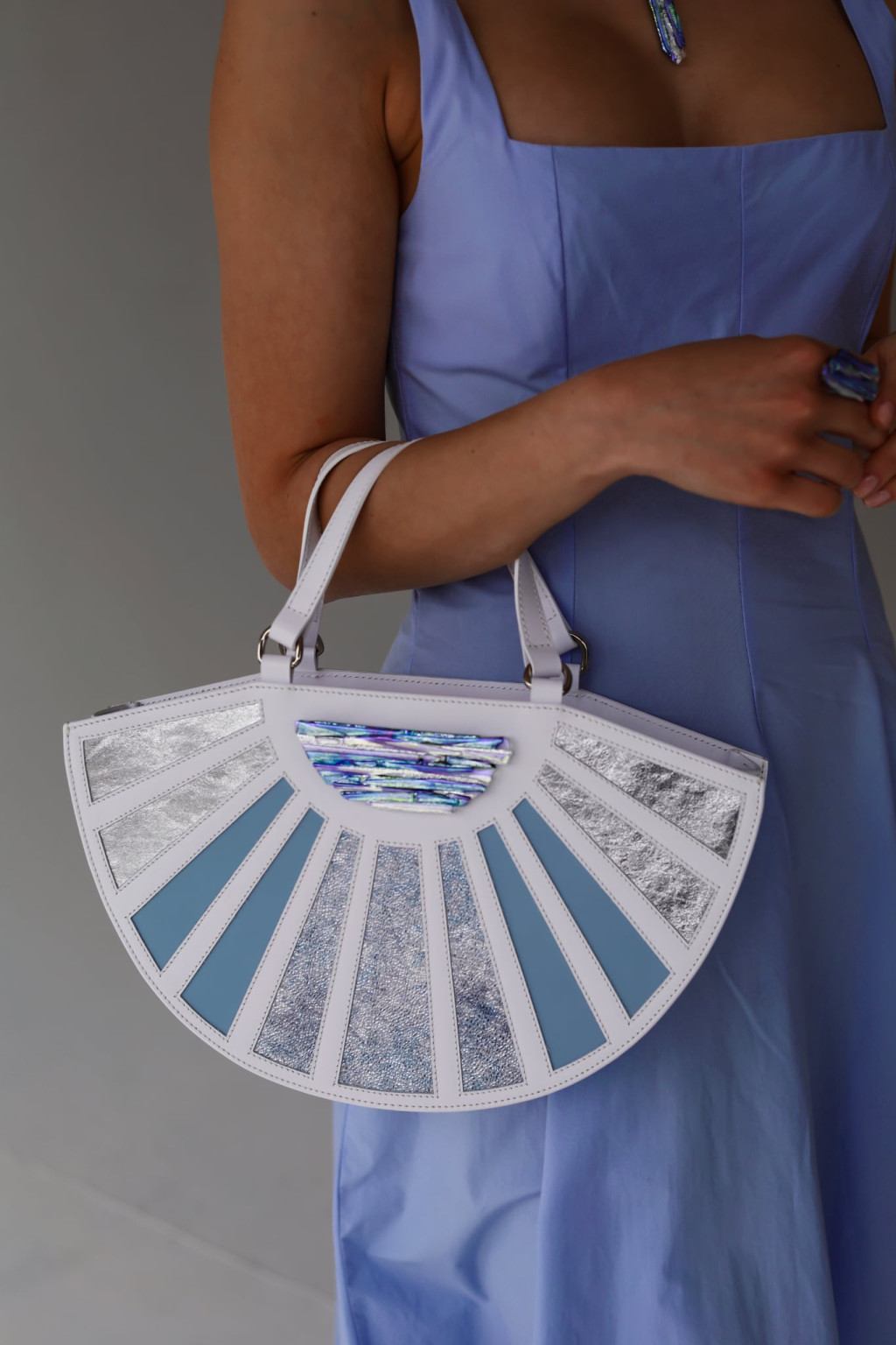 A formák egységesek, a színvariációk merészek; minden darab a fény játékára hangolt találkozás Hodlik Anna bőrvilága és az MJ glass design irizáló üvegcsodái között.